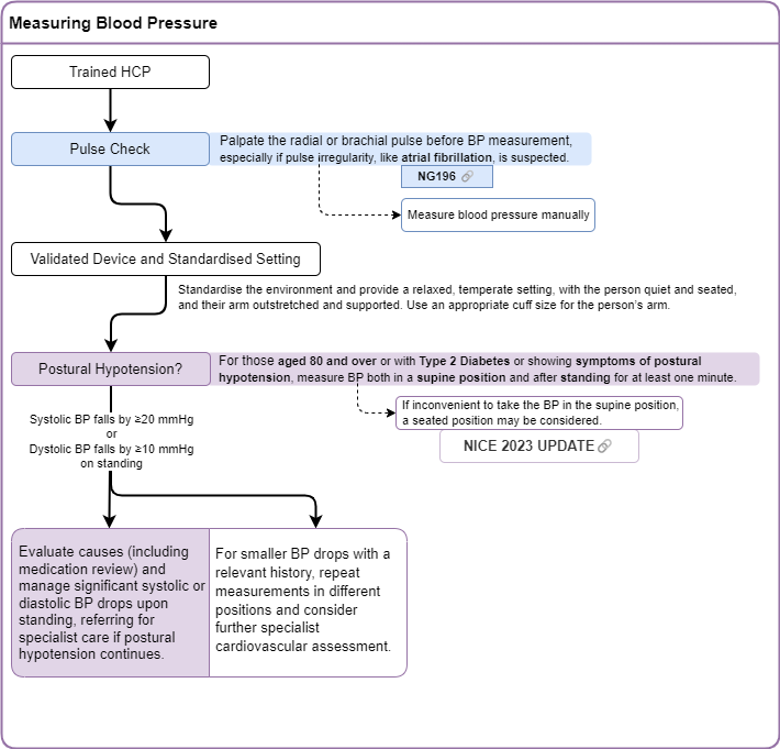 - Device Validation and Maintenance: Healthcare providers must ensure that devices for measuring blood pressure are properly validated, maintained, and regularly recalibrated according to manufacturers' instructions. [NG136]